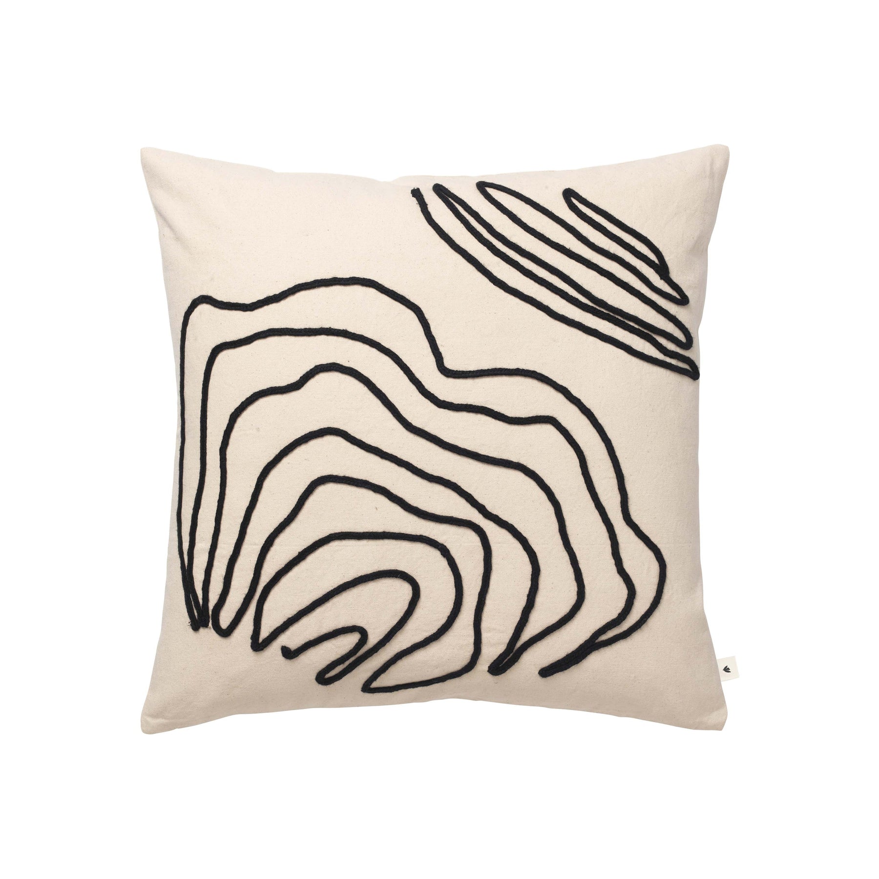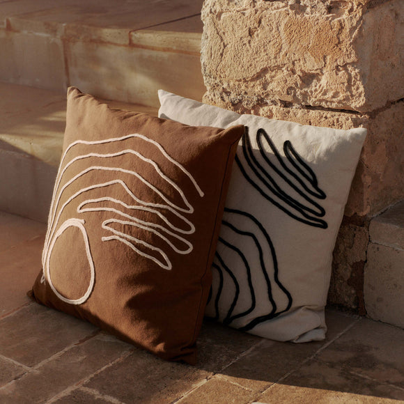 Indulge in the luxury of nature with the Jot Cushion from Ferm Living. Made from 100% GOTS-certified cotton, its intricate design captures the poetic beauty of shorelines and water currents. The delicate braiding and hand-stitched details add texture and depth to this exclusive piece. Elevate your home decor with this sophisticated and unique cushion.