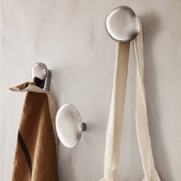 Jewellery designer Helena Rohner brings her signature aesthetic to ferm LIVING with a series of decorative objects for the home. Inspired by the dome-shaped mushroom – a little porcini or a classic champignon – this practical hook is sculpted from stainless steel with a cool sheen. Originally formed by hand, it brings a human touch to interiors. Use it in the kitchen, hallway, bathroom or bedroom to hang towels or clothes. Engraved with the initials of both Helena Rohner and Ferm Living, the hook comes packaged in a textile pouch.