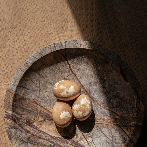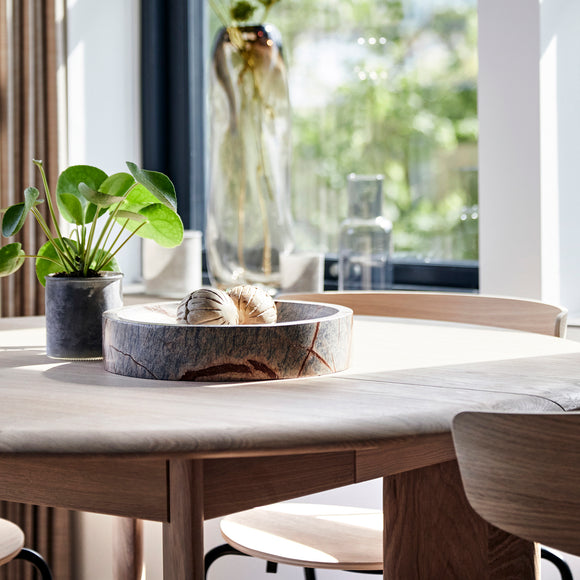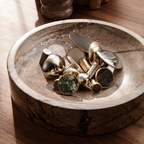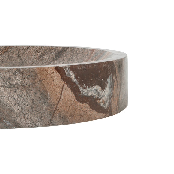 Elevate your tablescape or home decor with the luxurious Scape Bowl from Ferm Living. Made from sturdy, natural brown marble, each bowl is unique, boasting a distinct and beautiful expression of the stone. Perfect as a centerpiece, it adds a touch of nature to your dinner or coffee table.