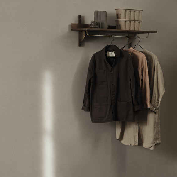 Create a stylish and practical interior with the Sector Rack Shelf from Ferm Living. Its modern design, featuring wood and brass, adds a touch of sophistication to any space. Use in your hallway to hang coats or as part of a functional dressing area for simple, yet streamlined storage possibilities.