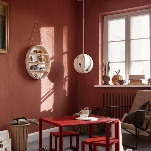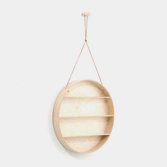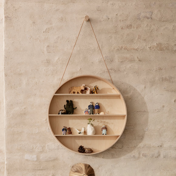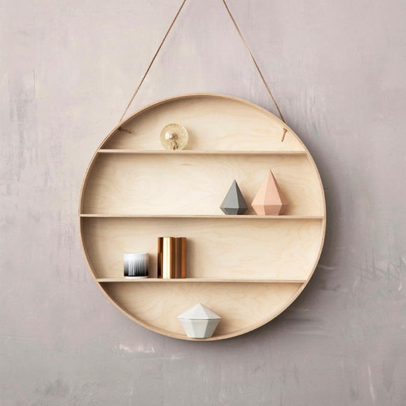 The Round Dorm from Ferm Living is artfully crafted to transform any living space into a work of art. With a delicate combination of beech and birch plywood, it hangs gracefully from a leather string, while a beech hook completes the look. Perfect for storage and display, it will lend an elegant, unique touch to your wall.
