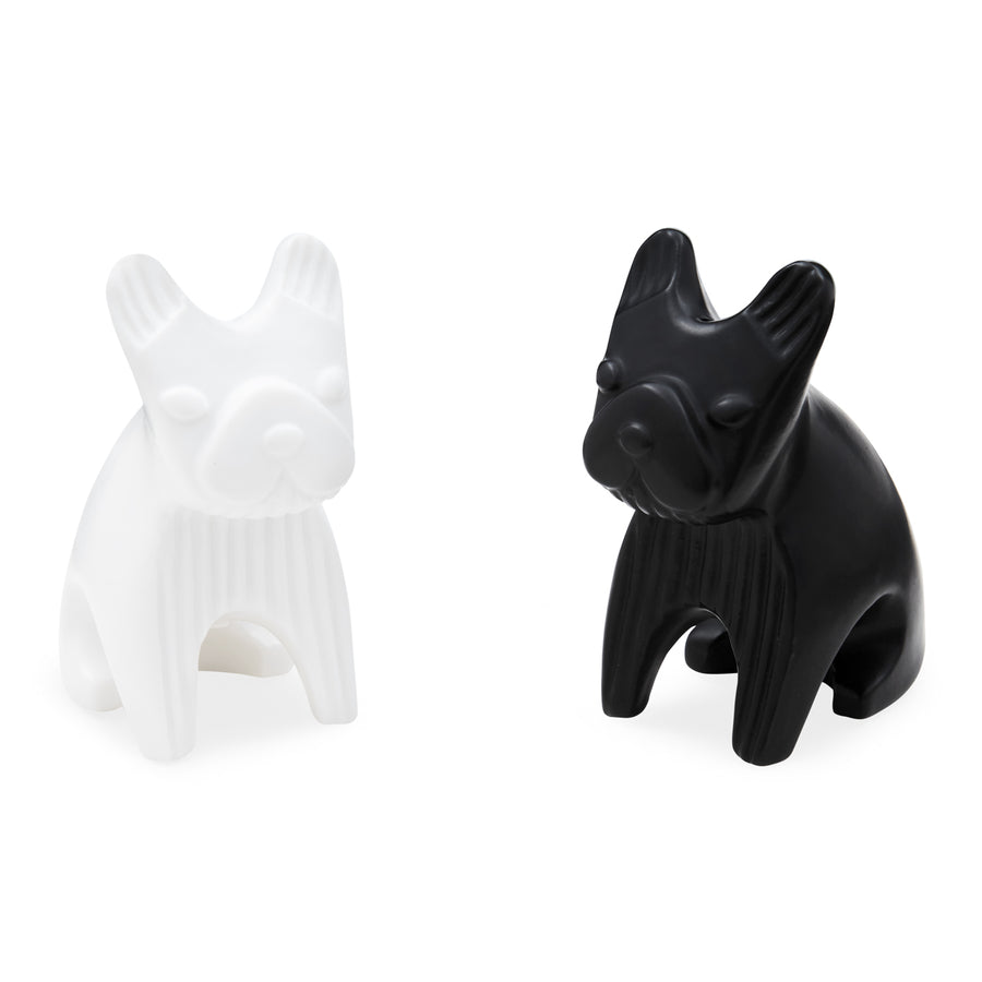 Don't forget a dash of mid-century modernism at mealtime. Featuring one of our classic Menagerie shapes, our French Bulldog Salt and Pepper Set features two posh pups—one black, one white—crafted from high-fired porcelain.