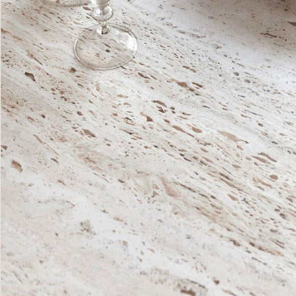 Discover the timeless beauty of the Epic Dining Table by GamFratesi for GUBI. This Italian-crafted table, inspired by Greek and Roman architecture, features a monolithic travertine stone form that celebrates the natural beauty through its veins and textures. A stunning centerpiece in any dining room, this unique table seats up to five people comfortably.