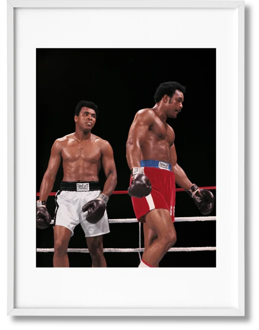 Marking the year of the match, The Fight is limited to 1,974 numbered copies signed by the photographers. Copies No. 1–125 come with a pigment print signed by Neil Leifer, Ali vs Foreman – Ali Glaring at Foreman. Due to unforeseen circumstances, the original Howard L. Bingham print that accompanied Art Edition A could not be made available at the time of publication.