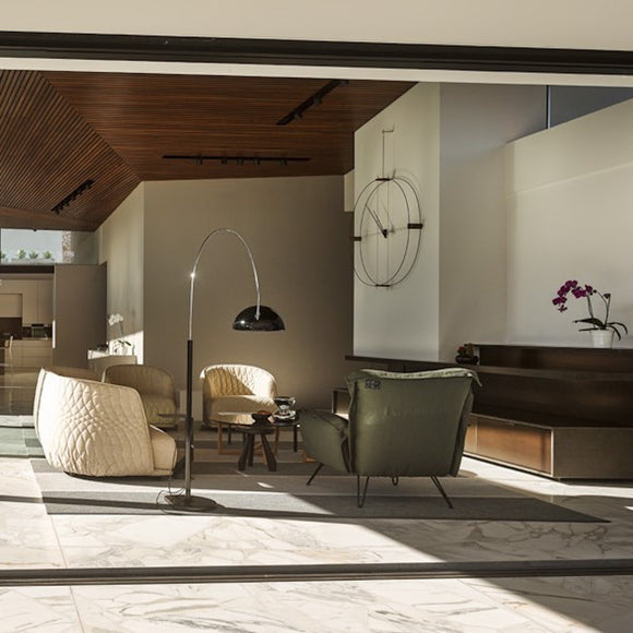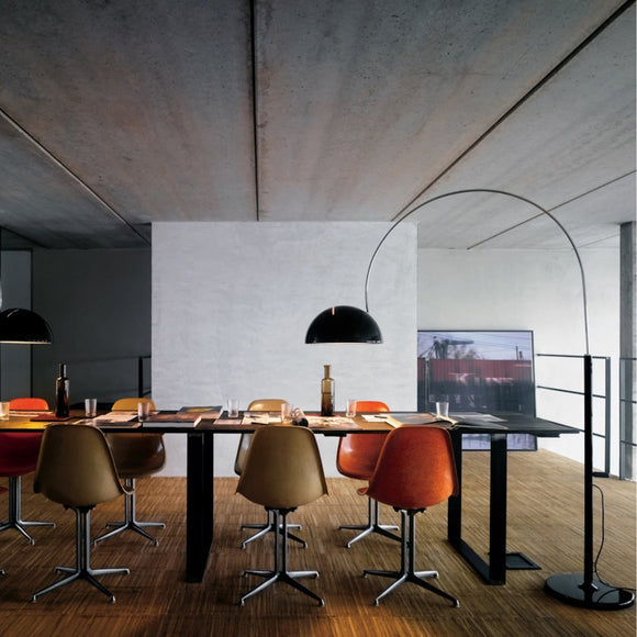 A design icon of the 1960's the Coupe Arched Floor Lamp from Oluce is ready to bring award-winning style to your contemporary abode. Featuring a metal lacquered base and structure, with a revolving and height-adjustable chromium-plated arc, the simple, yet ingenious mechanism connecting the stem to the head makes it possible to direct the diffused light in multiple directions. Utilize as an unexpected light source within a dining room, or place next to a favorite oversized lounge chair for an afternoon of well-lit reading.