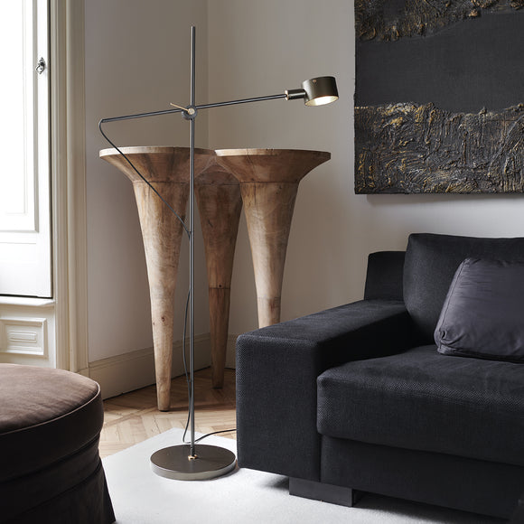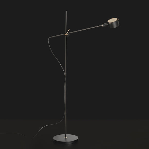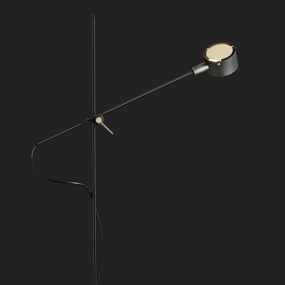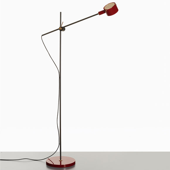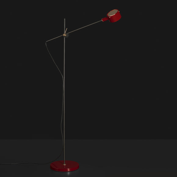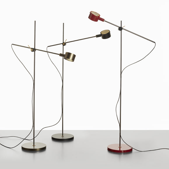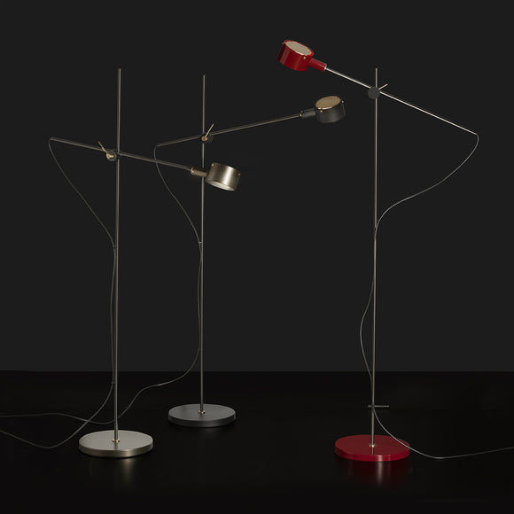 The G.O. Floor Lamp from Oluce is a versatile and stylish addition to any room. Its adjustable arm allows for personalized lighting, while the satin gold details add a touch of elegance. Choose from three colors for the base and lampshade to match your decor. Also available in a table lamp version.