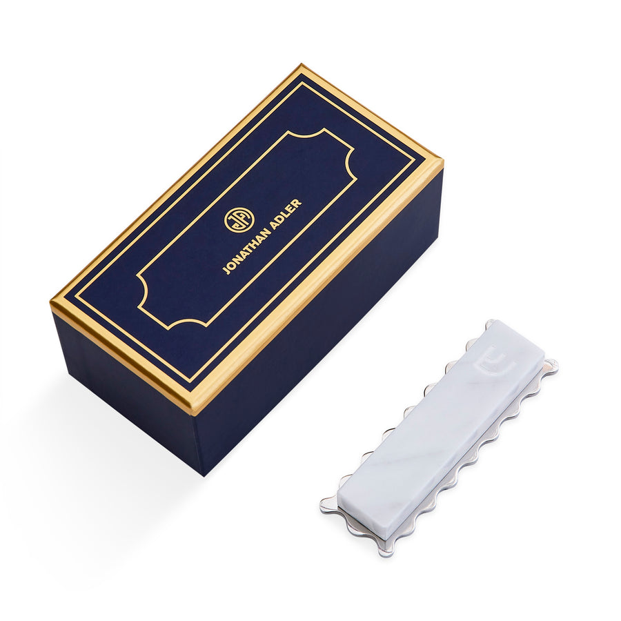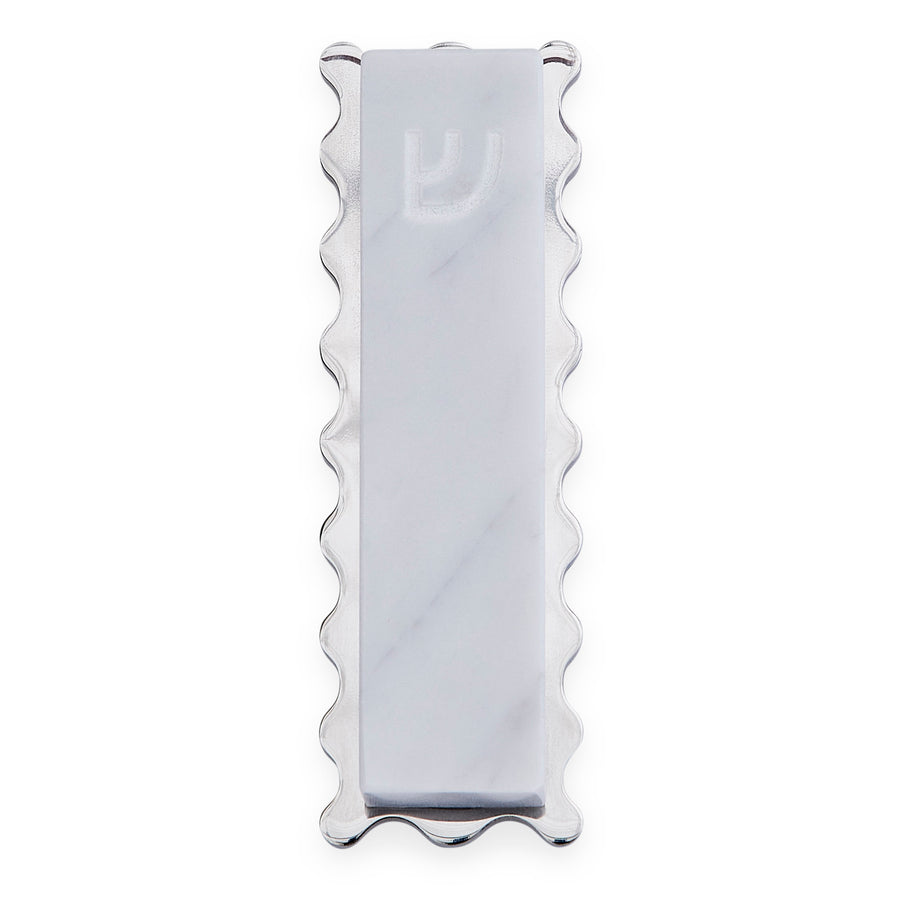 Let visitors know they’re entering the abode of one of the most stylish members of the tribe. Our white marble Ripple Mezuzah features an engraved Shin and a shiny nickel perimeter.