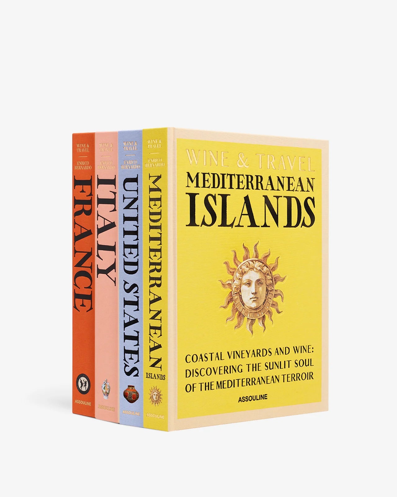 Explore the world’s finest vineyards with Assouline’s Wine & Travel gift set, where acclaimed sommelier Enrico Bernardo guides readers through the sunlit Mediterranean islands, France’s diverse wine regions, Italy’s storied terroirs, and the dynamic landscapes of the United States. From hidden cellars in Napa and seaside tastings in Sicily to the rolling hills of Bordeaux and the misty valleys of Oregon, each volume uncovers breathtaking scenery, unique flavors, and the cultural heritage behind every bottle. This exquisite set is the perfect companion for wine lovers and travelers seeking unforgettable journeys across the globe.
